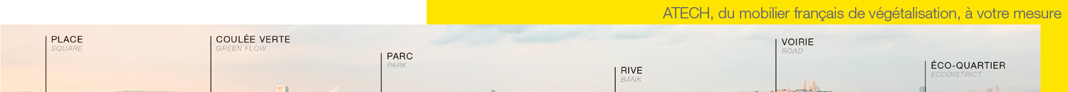 Toujours spécialisé dans le fleurissement, Atech propose un large choix de bacs de fleurissement, bacs d’orangerie et même de bacs sur-mesure. Le fabricant offre également du mobilier urbain d’ornement : des bancs, chaises, tables, corbeilles, supports vélos, grille d’arbre, potelets, barrières…